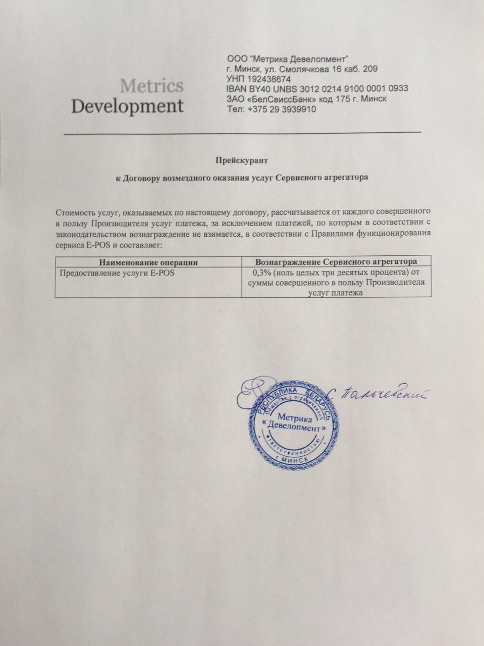 Прием платежей по сервису E-POS | 1,2 |
